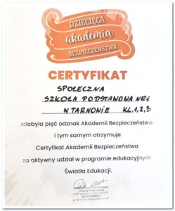 Uczniowie klas 1–3 uczestniczyli w prelekcji na temat bezpieczeństwa. Dzieci przypomniały sobie najważniejsze zasady dotyczące bezpiecznego zachowania w różnych sytuacjach oraz dowiedziały się, jak reagować w razie zagrożenia, a także uzyskały Certyfikat Akademii Bezpieczeństwa. Następnie obejrzały film pt. „Był sobie kot” – ciepłą i pouczającą historię o odpowiedzialności, trosce i sile rodzinnych relacji. To był wartościowy i pełen wrażeń dzień!